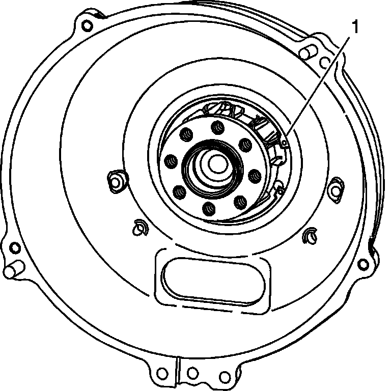 3. Remove the hub (1) from the flex plate spindle.
