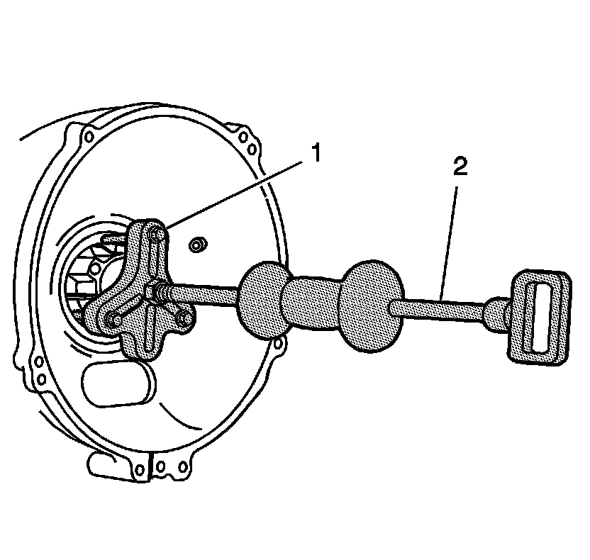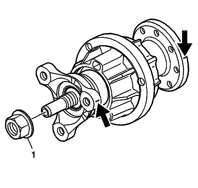 2. Remove the nut (1) from the flex plate spindle.