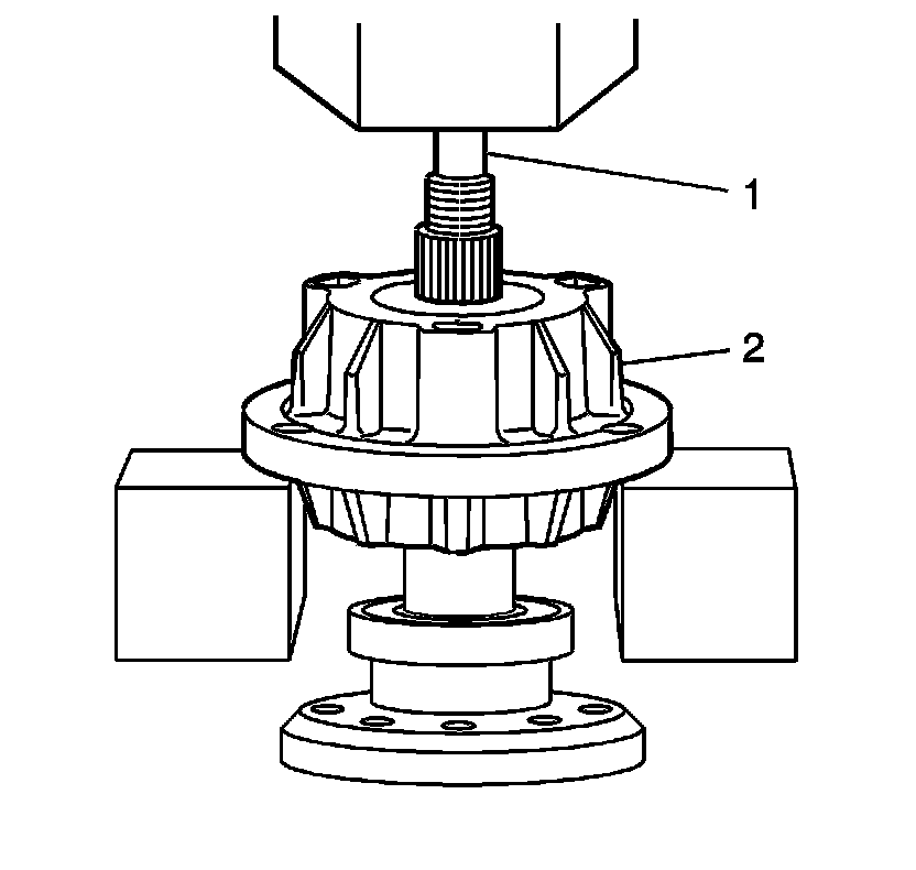 4. Position the bearing housing assembly (2) into a press in order to remove the flex plate spindle (1).