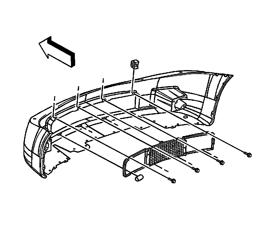 1. Remove the front bumper fascia. Refer to Front Bumper Fascia Replacement (Front Bumper Fascia Replacement).