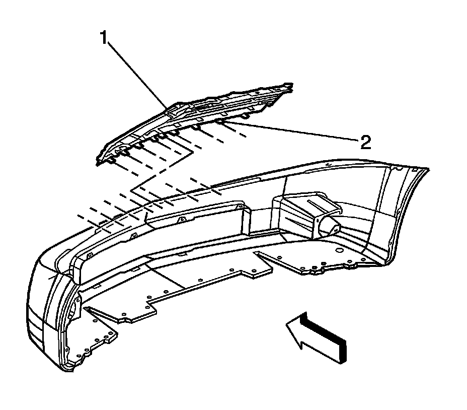 1. Remove the front bumper fascia. Refer to Front Bumper Fascia Replacement (Front Bumper Fascia Replacement).