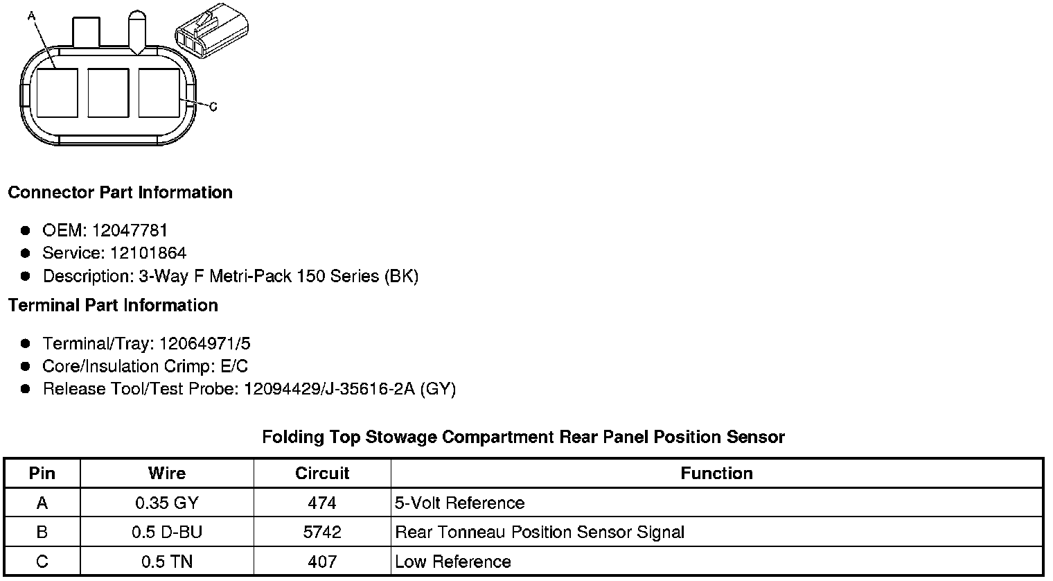 Folding Top Stowage Compartment Rear Panel Position Sensor