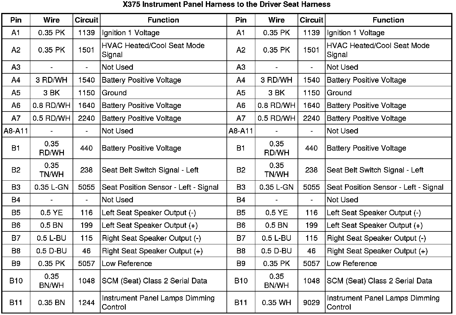 X375 Instrument Panel Harness to the Driver Seat Harness