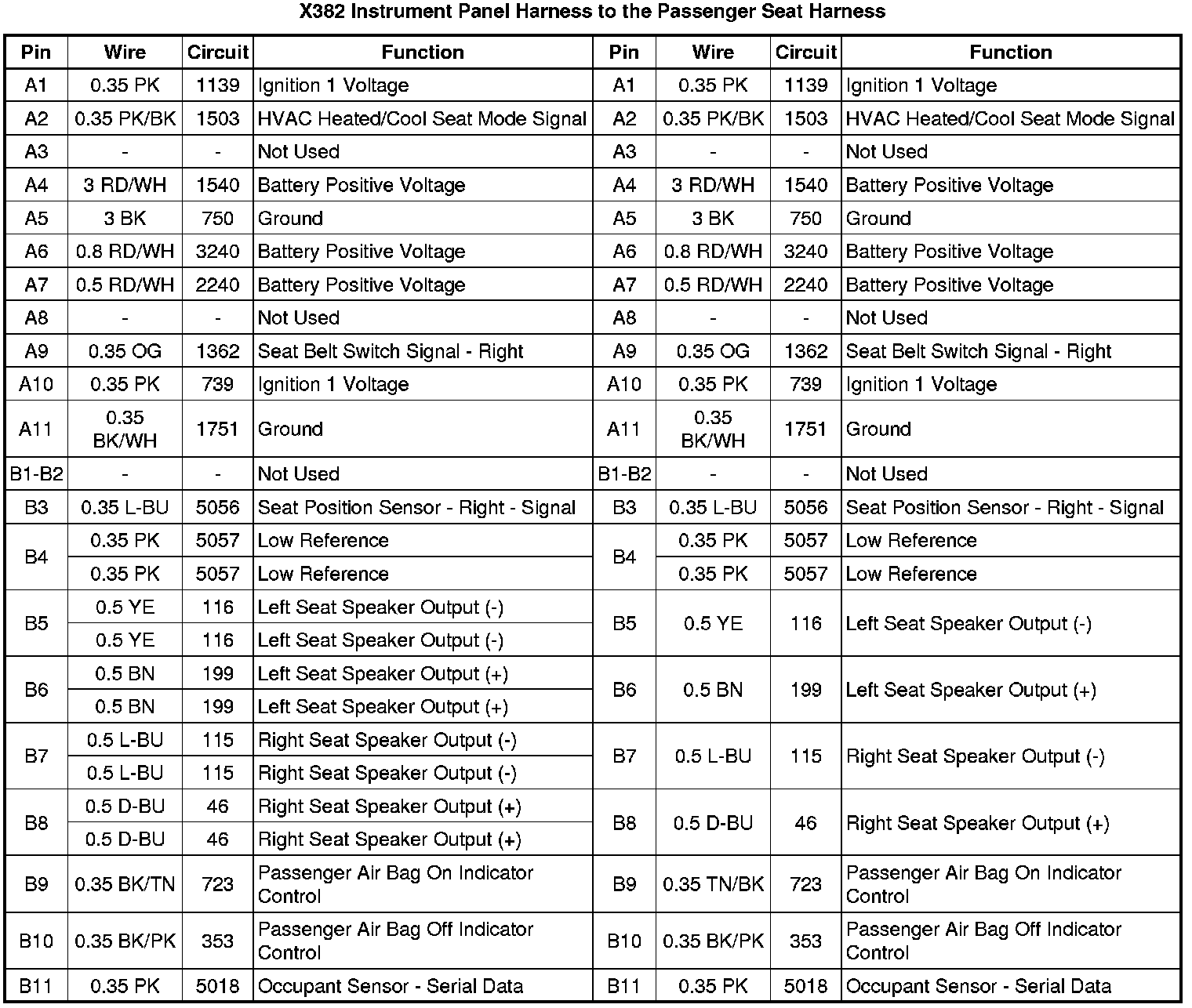 X382 Instrument Panel Harness to the Passenger Seat Harness