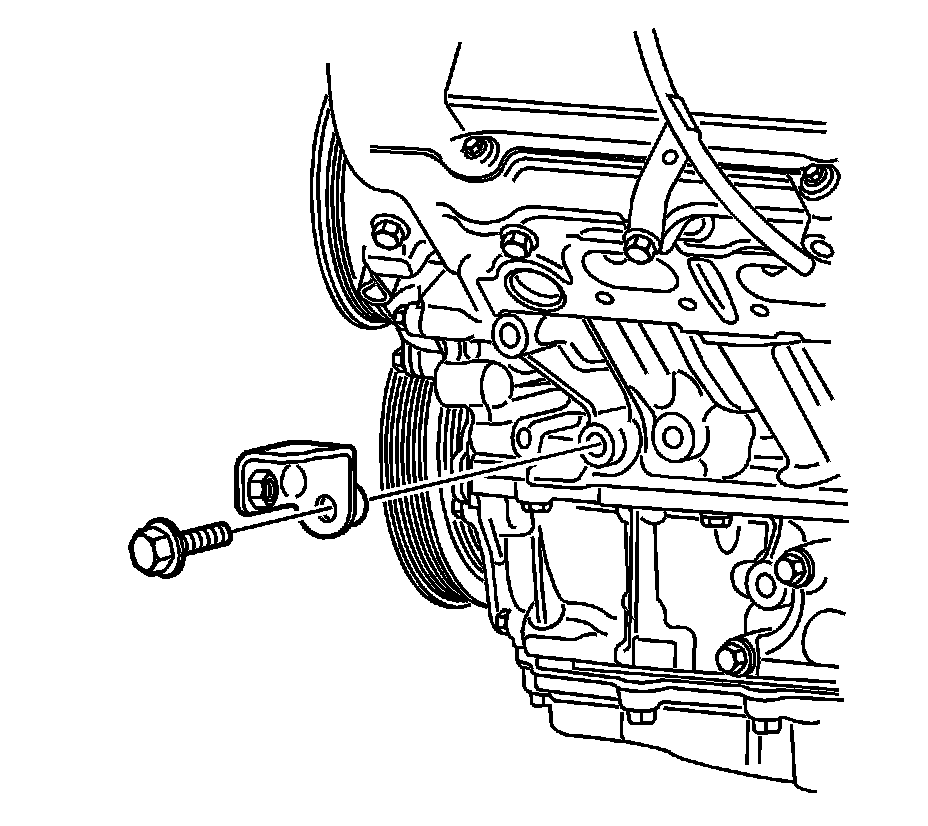 5. Install the front upper generator bolt finger tight through the generator and into the rear generator brace.