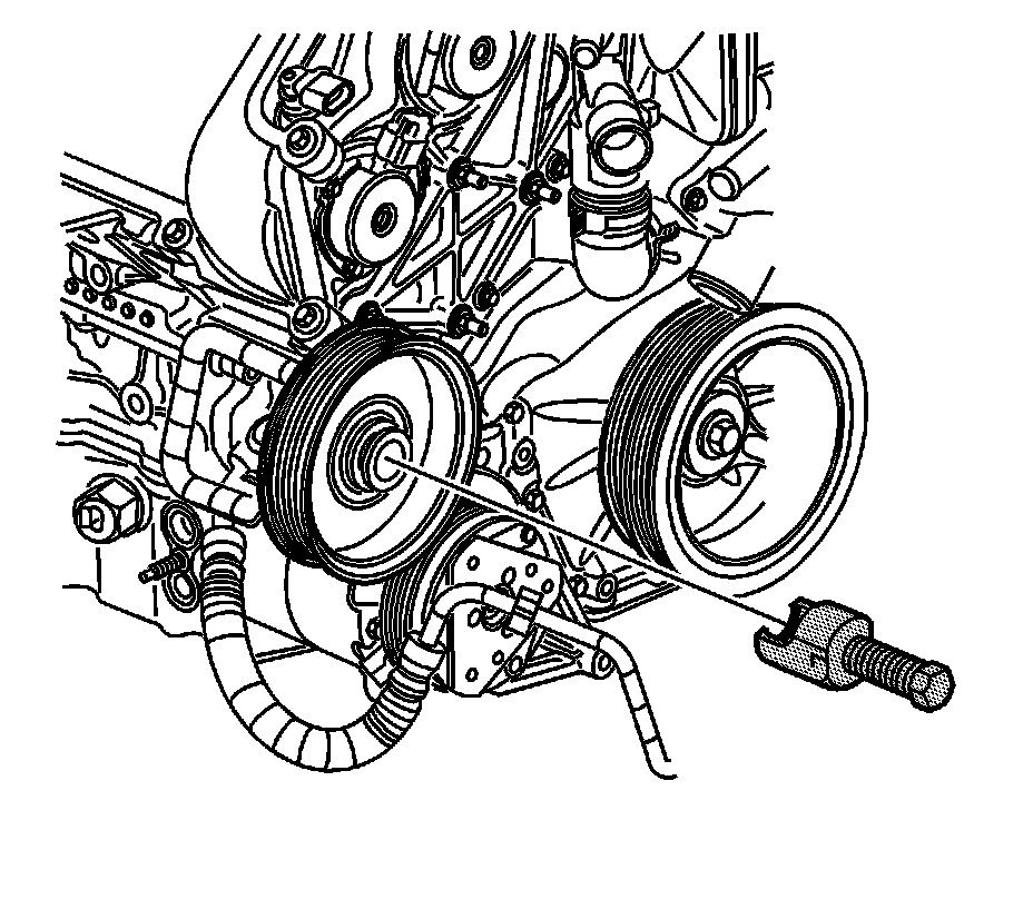 1. If necessary, using the J 25034-C , remove the power steering pump pulley in order to access the power steering pump mounting bolts.