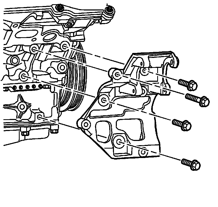 3. Remove the P/S pump and A/C compressor bracket bolts.