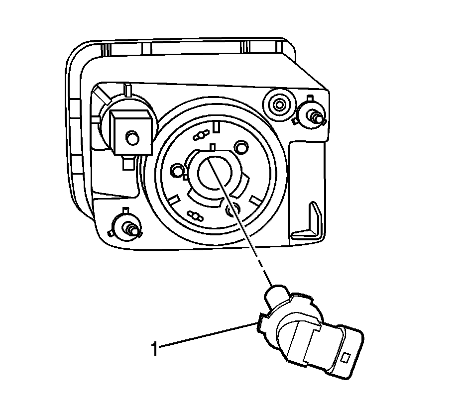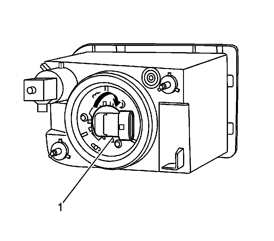 3. Remove the fog lamp bulb/socket from the fog lamp by rotating the bulb/socket counterclockwise (1).