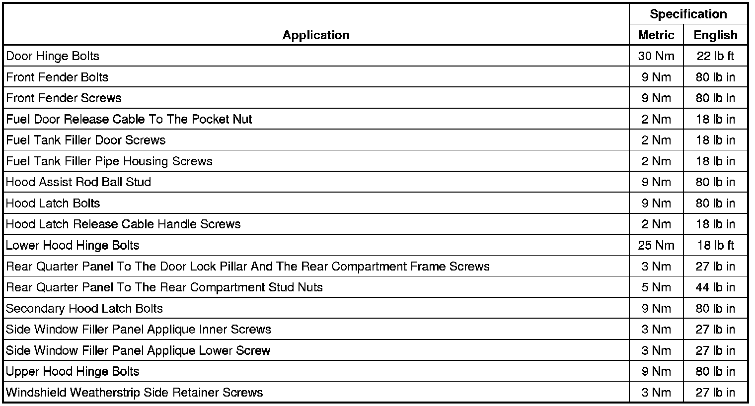 Fastener Tightening Specifications