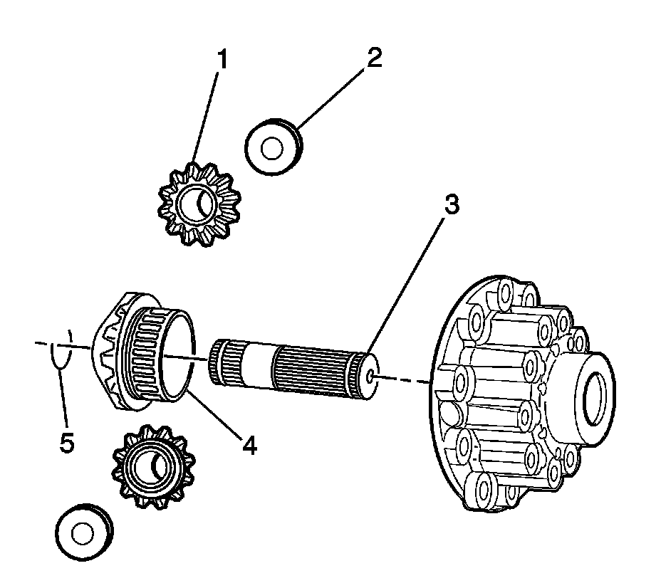 * Excessive wear or scoring in the side gear (1) pin bores