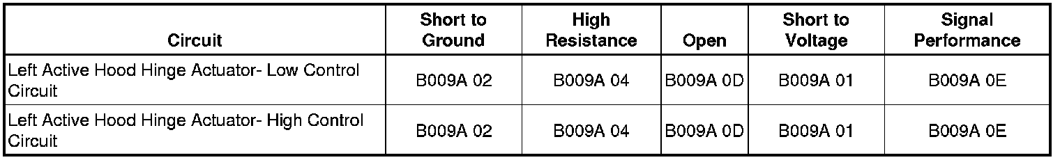 - Left Active Hood Hinge Actuator Deployment Loop Short to Ground