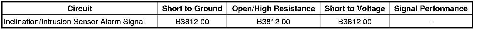 When the content theft deterrent (CTD) system arms and the inclination and intrusion sensors are enabled, the body control module (BCM) receives a power-up acknowledgement from the sensors via the sensor signal circuit.