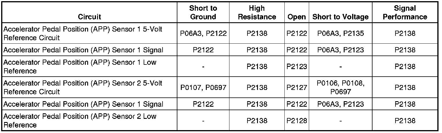 - Accelerator Pedal Position (APP) Sensor 2 Circuit High Voltage