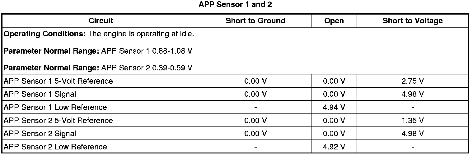 - Accelerator Pedal Position (APP) Sensor 1 Circuit Low Voltage