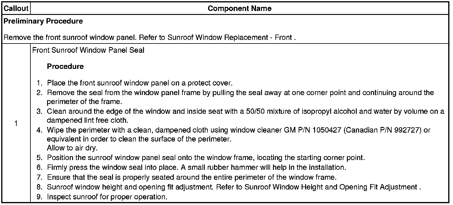 Sunroof Window Seal Replacement - Front