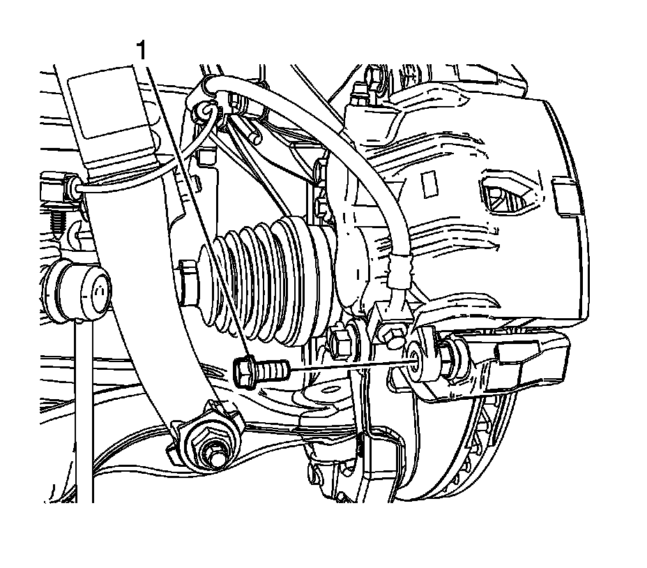 Caution: Support the brake caliper with heavy mechanic wire, or equivalent, whenever it is separated from its mount and the hydraulic flexible brake hose is still connected. Failure to support the caliper in this manner will cause the flexible brake hose to bear the weight of the caliper, which may cause damage to the brake hose and in turn may cause a brake fluid leak.