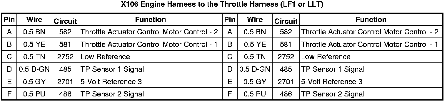 X106 Engine Harness to the Throttle Harness (LF1 or LLT)