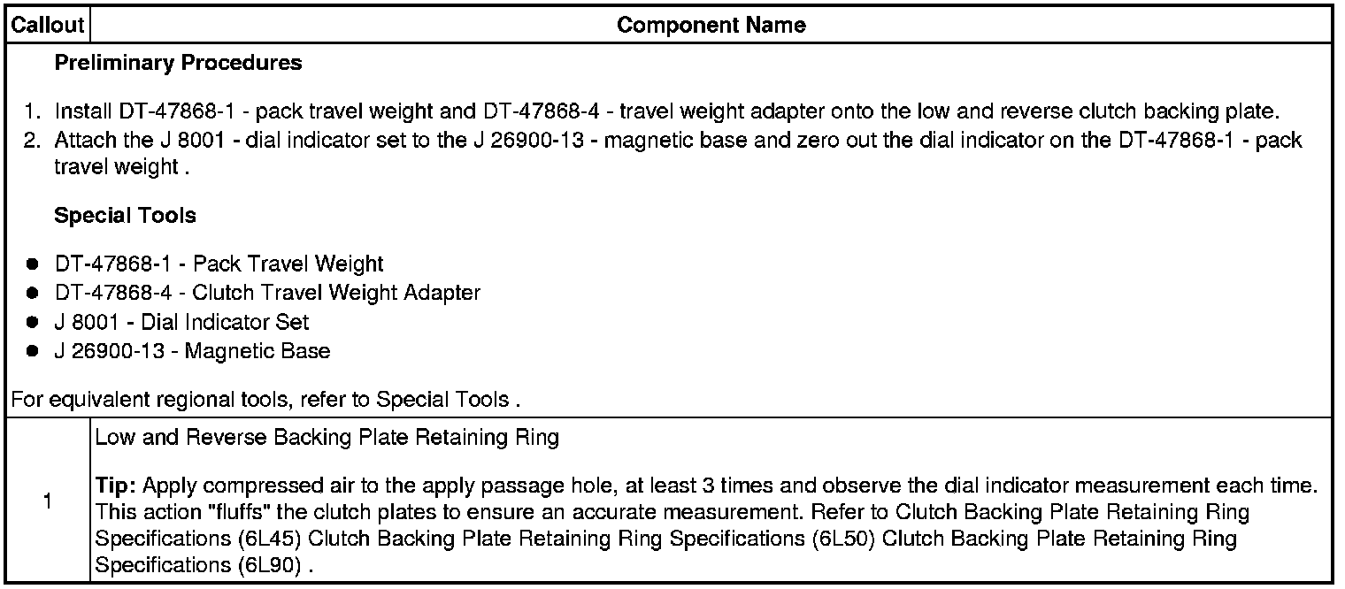 Low and Reverse Clutch Backing Plate Retaining Ring Measurement