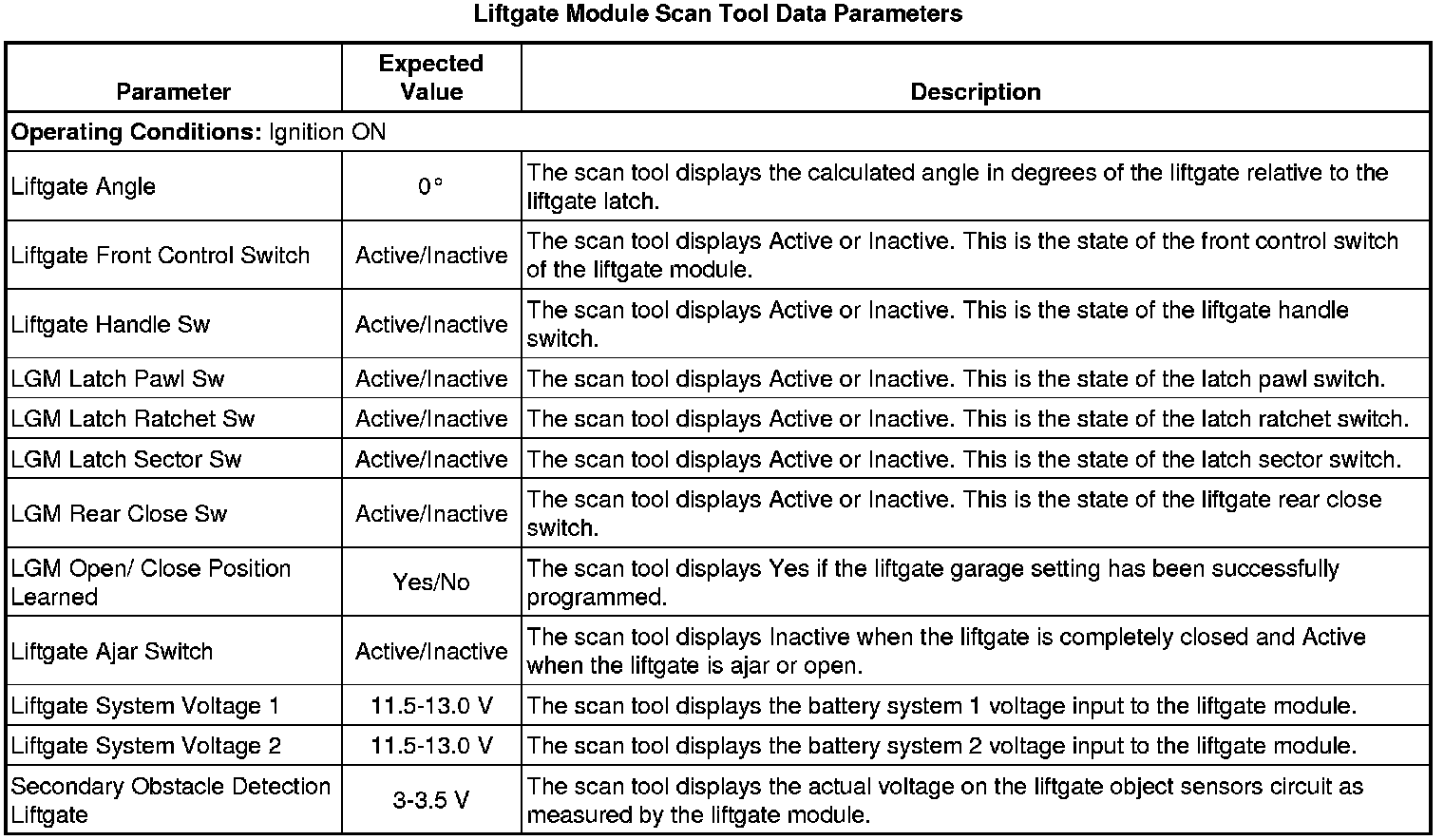 Liftgate Close Actuator Motor Control Module Scan Tool Information