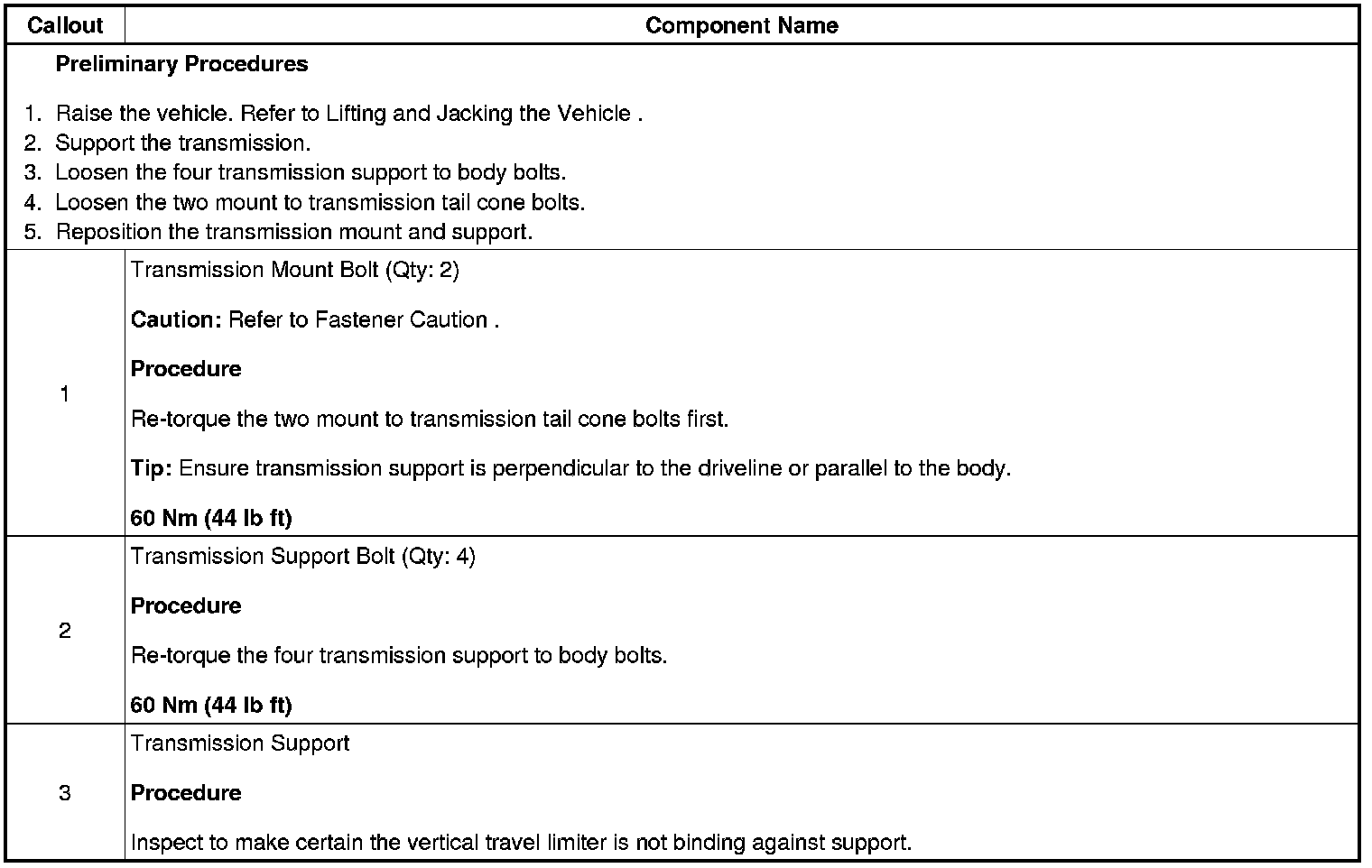 Transmission Support Adjustment (Manual)