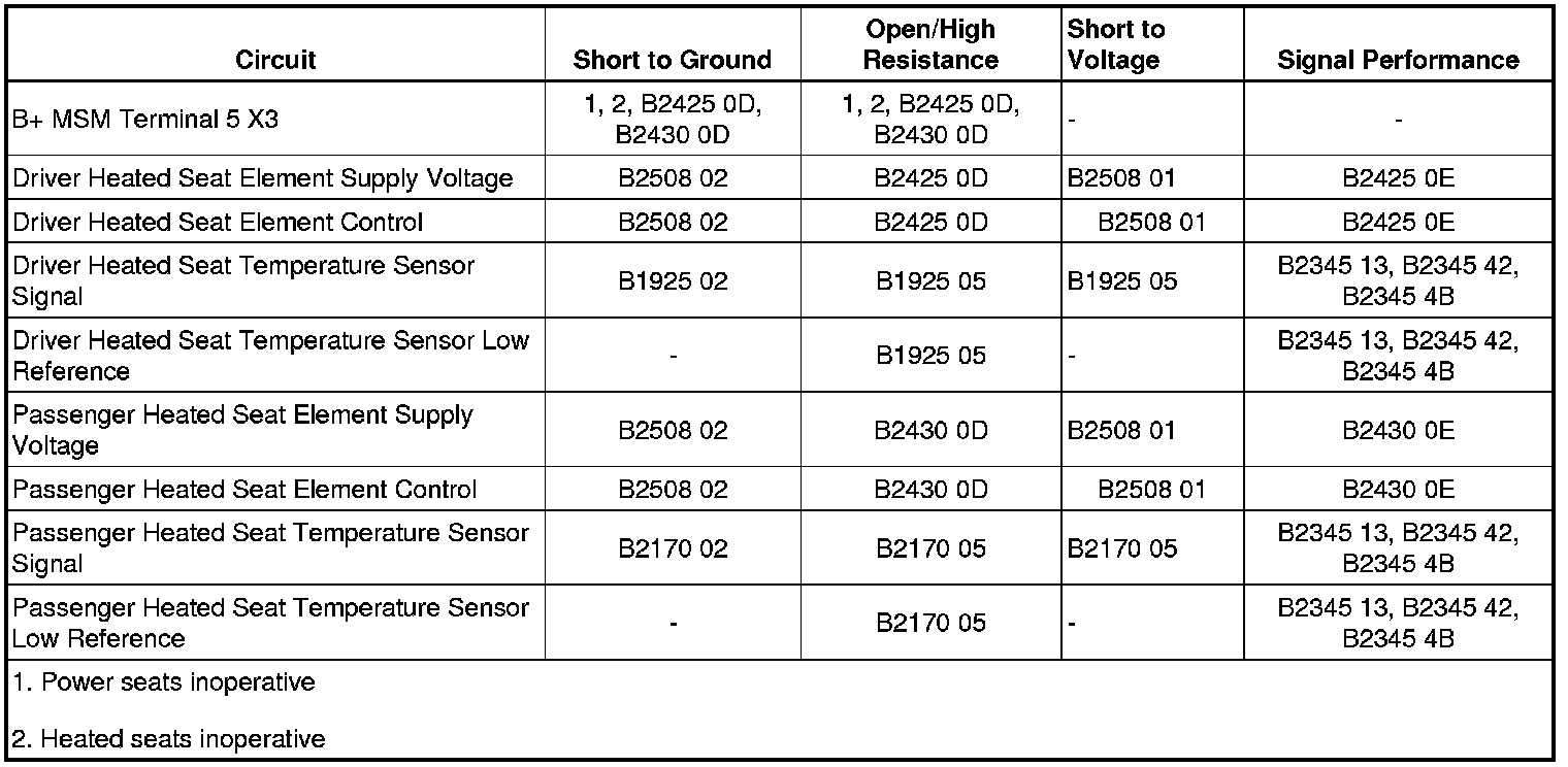6. If the scan tool readings are normal, there are no DTCs set, and the driver and/or passenger heated seat is inoperative, replace the MSM.
