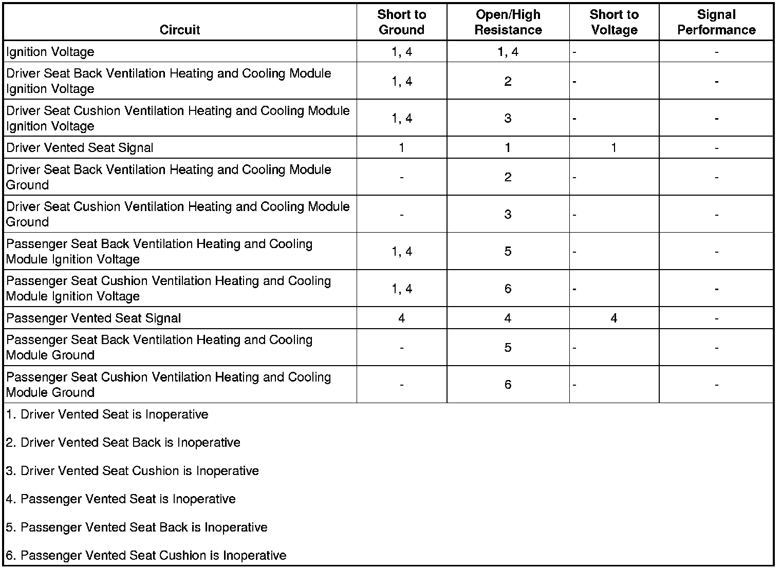 3. If all scan tool readings test normal and the driver and/or passenger vented seat is inoperative, refer to Circuit/System Testing.
