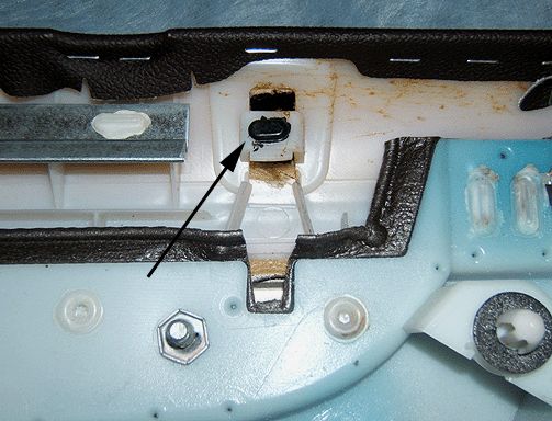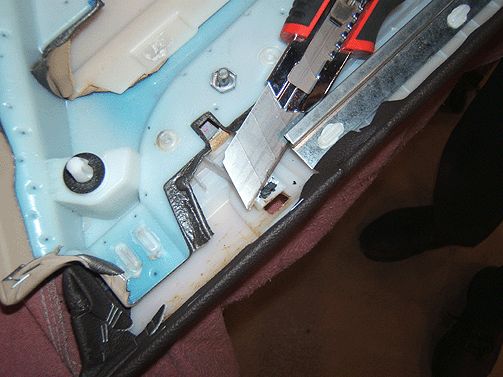 2. Prepare the mounting area of the trim panel. Use a utility knife or similar tool to remove the residue from the original bezel heat stake. Use care to not damage the mounting area on the trim panel.