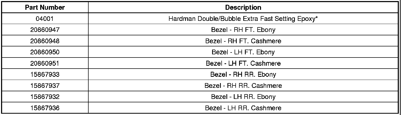 6. Apply the adhesive to the area where the bezel mounting tab protrudes through the opening in the trim panel. For this application, use a two-part extra-fast setting epoxy, such as Hardman Double/Bubble Extra Fast Setting Epoxy*, or the equivalent.