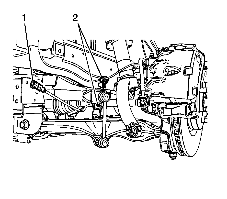5. Install the wheel speed sensor wire harness clips (2) to the stabilizer bar bracket.