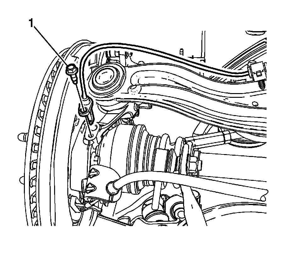 1. Install the wheel speed sensor and bolt (1) to the suspension knuckle and tighten to 9 Nm (80 lb in).