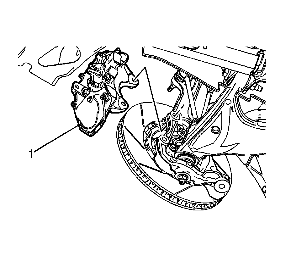 4. Remove the brake pads. Refer to Front Disc Brake Pads Replacement (JE5, J55 (RWD)) (Front Disc Brake Pads Replacement (JE5, J55))Front Disc Brake Pads Replacement (JE5, J55 (AWD)) (Front Disc Brake Pads Replacement (JE5, J55))Front Disc Brake Pads Replacement (J56) (Front Disc Brake Pads Replacement (J56)).