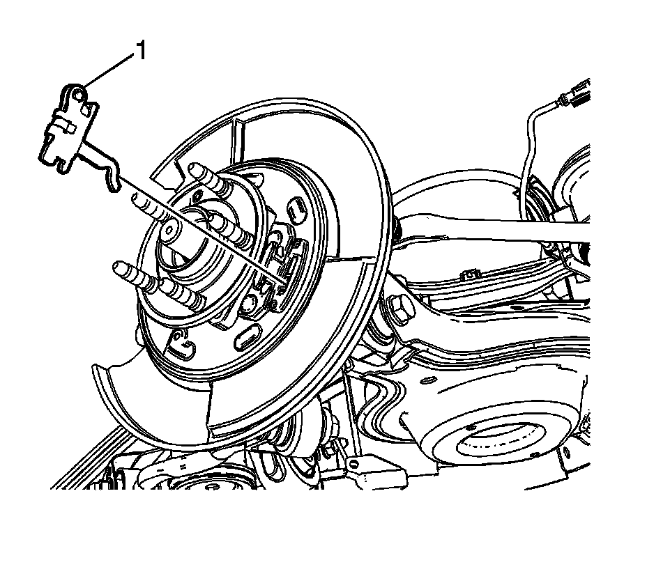 3. Install the parking brake actuator (1). Refer to Parking Brake Actuator Replacement (Service and Repair).