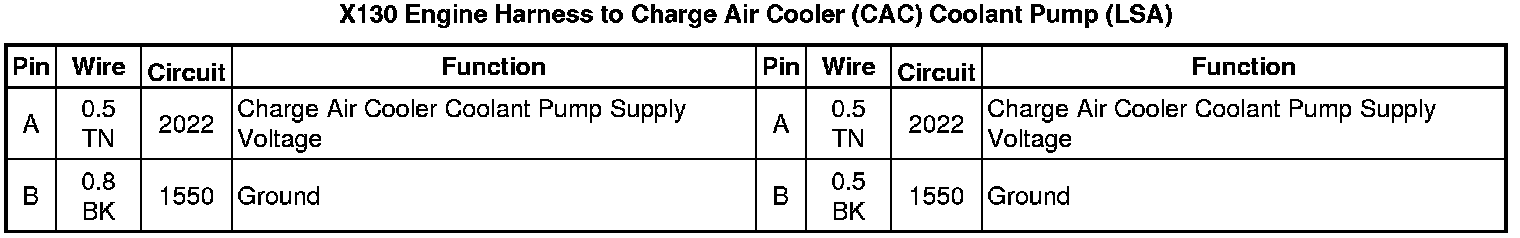 X130 Engine Harness to Charge Air Cooler (CAC) Coolant Pump (LSA)