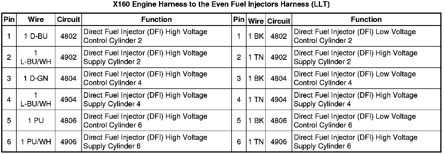 X160 Engine Harness to the Even Fuel Injectors Harness (LLT)