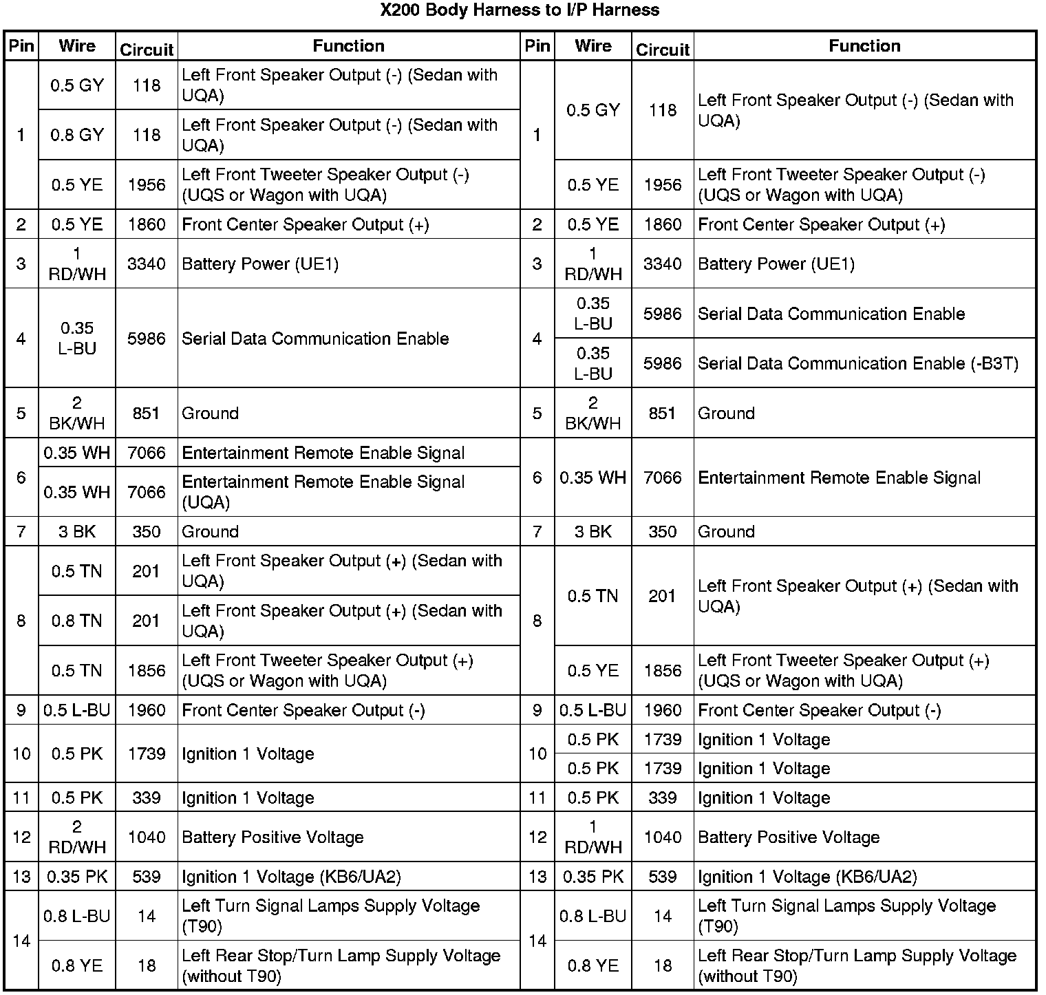 X200 Body Harness to I/P Harness