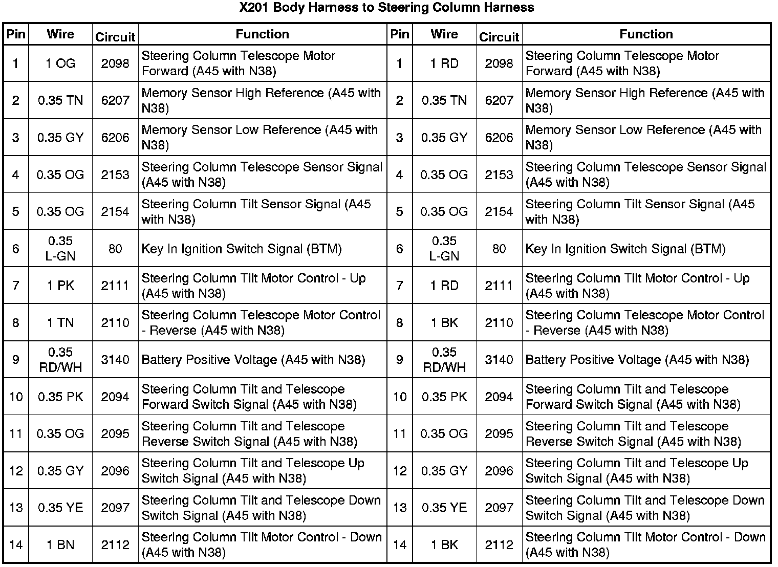 X201 Body Harness to Steering Column Harness
