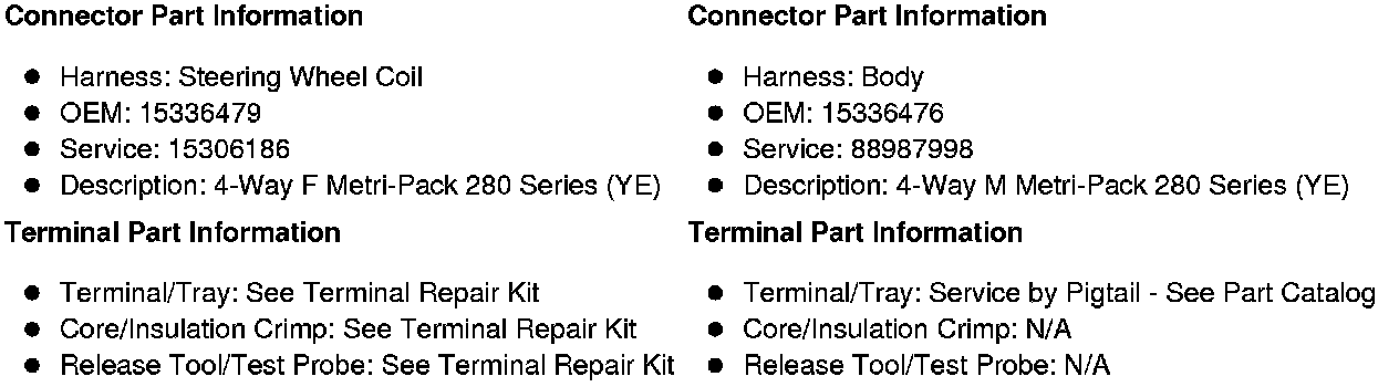 X203 Inflatable Restraint Steering Wheel Coil Harness to Body Harness