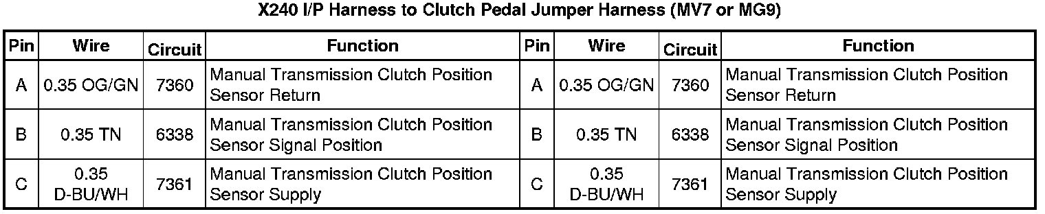 X240 I/P Harness to Clutch Pedal Jumper Harness (MV7 or MG9)