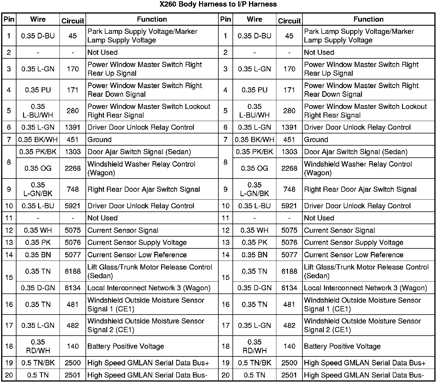 X260 Body Harness to I/P Harness