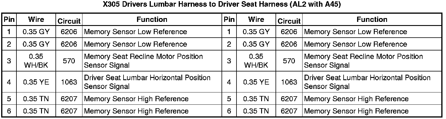 X305 Drivers Lumbar Harness to Driver Seat Harness (AL2 with A45)
