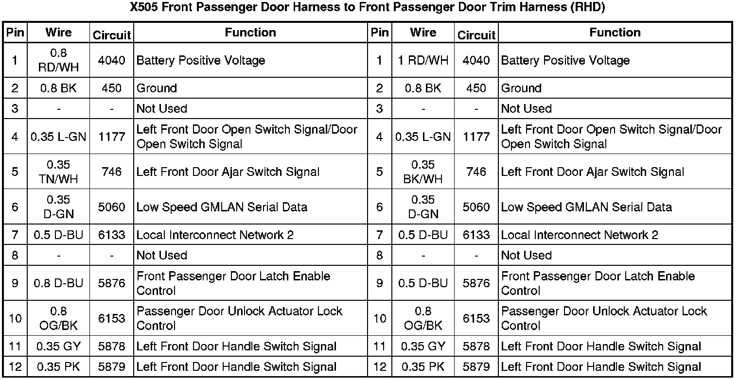 X505 Front Passenger Door Harness to Front Passenger Door Trim Harness (RHD)