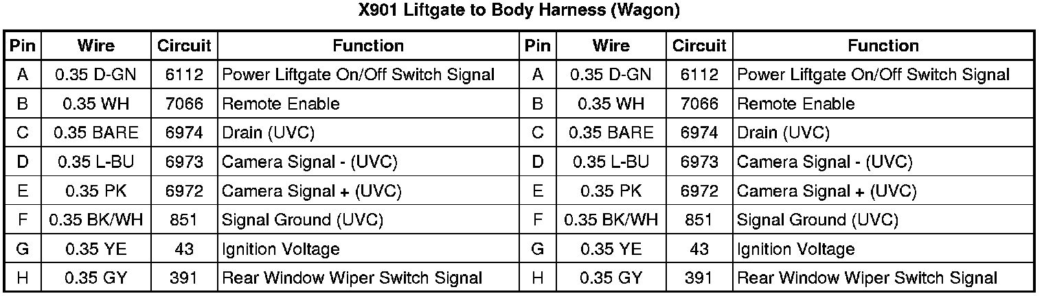 X901 Liftgate to Body Harness (Wagon)
