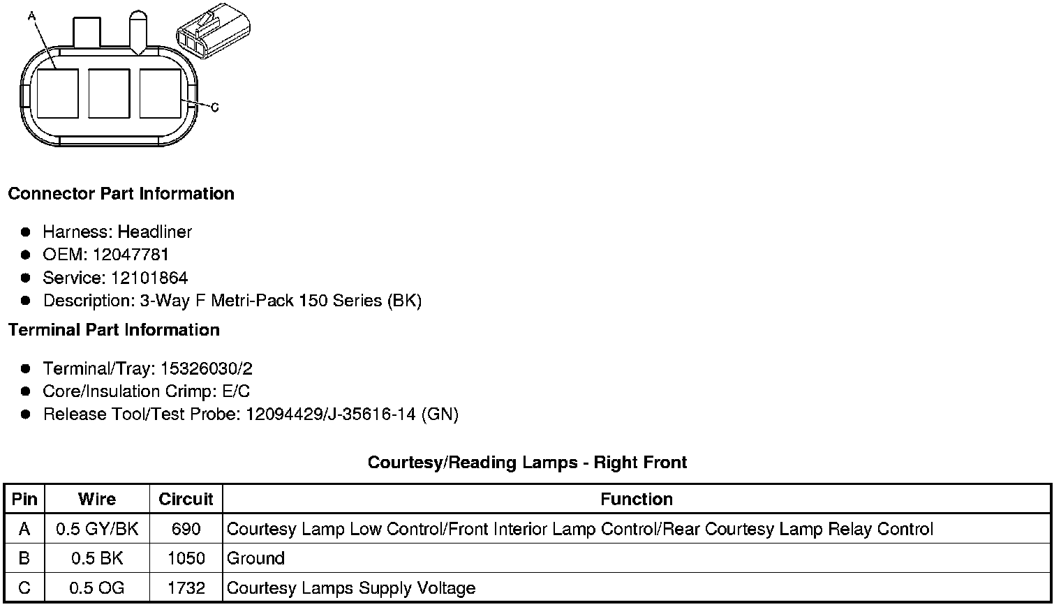 Courtesy/Reading Lamps - Right Rear (Sedan)