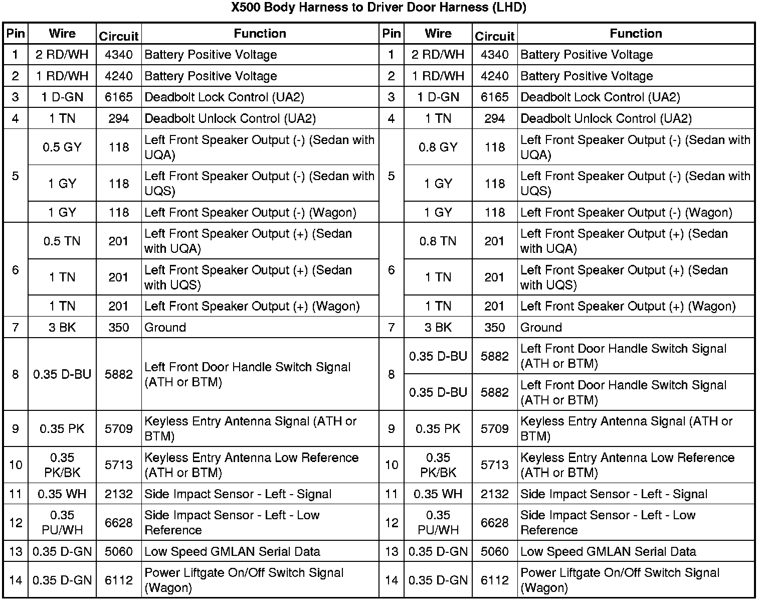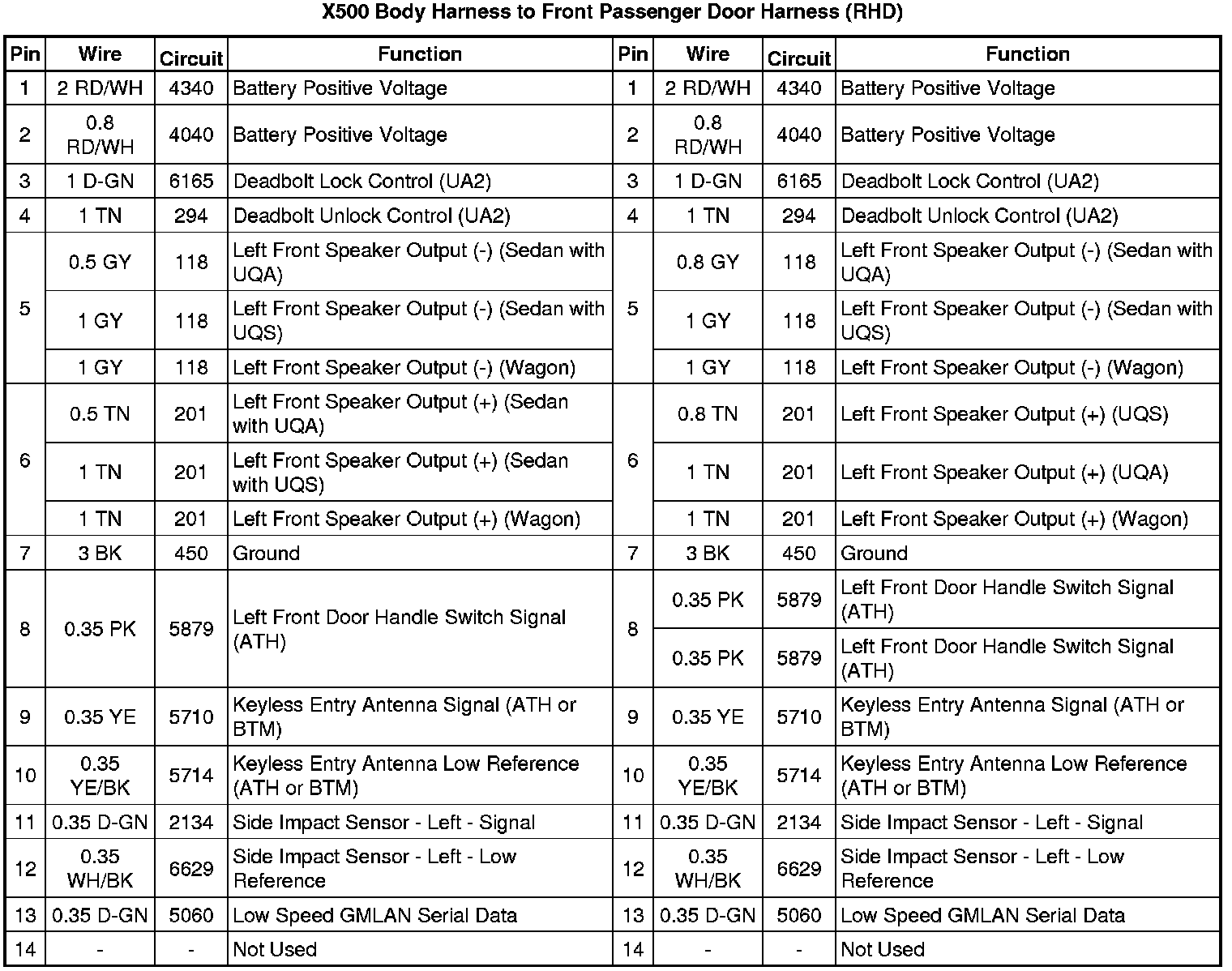 X500 Body Harness to Front Passenger Door Harness (RHD)