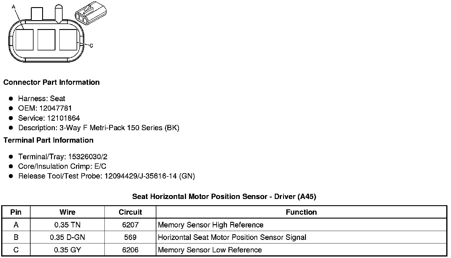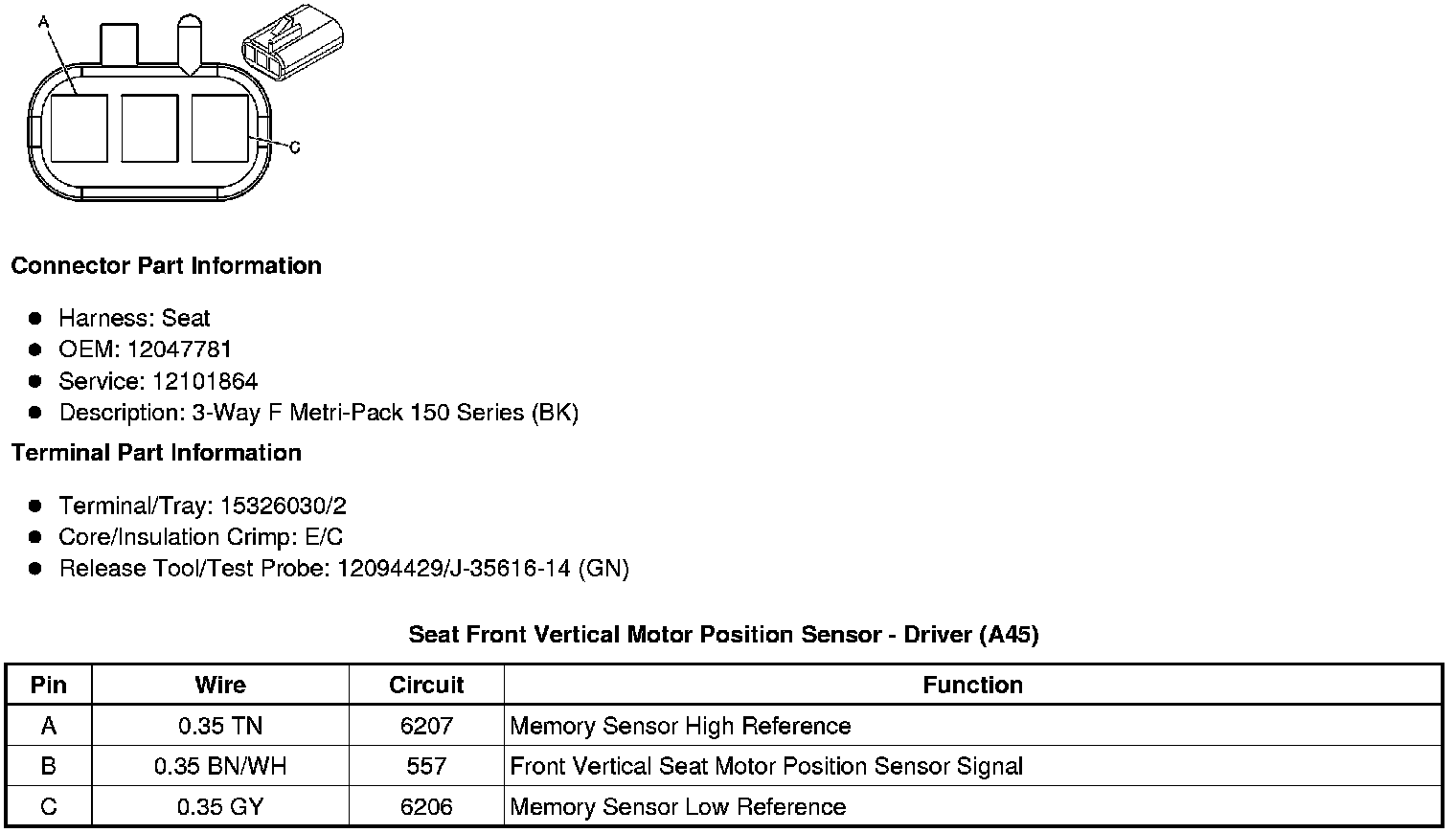 Seat Front Vertical Motor Position Sensor - Driver (A45)