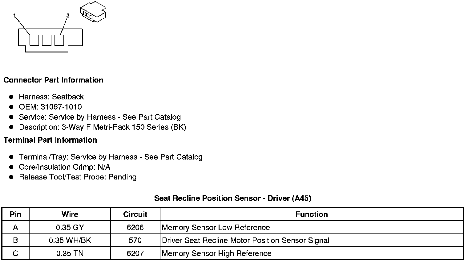 Seat Recline Position Sensor - Driver (A45)