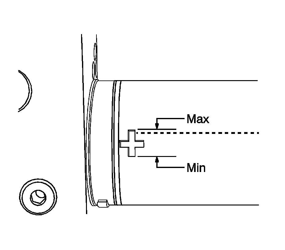 * Inspection of the hydraulic fluid level and/or refilling may only be completed if the liftgate hydraulic actuator pump is removed from the vehicle and placed on a clean/level workbench horizontally to the + sign to accurately inspect and add fluid as needed. The liftgate hydraulic actuator pump must rest in the horizontal position for one minute before the hydraulic fluid level is inspected. The level must be above the + mark.