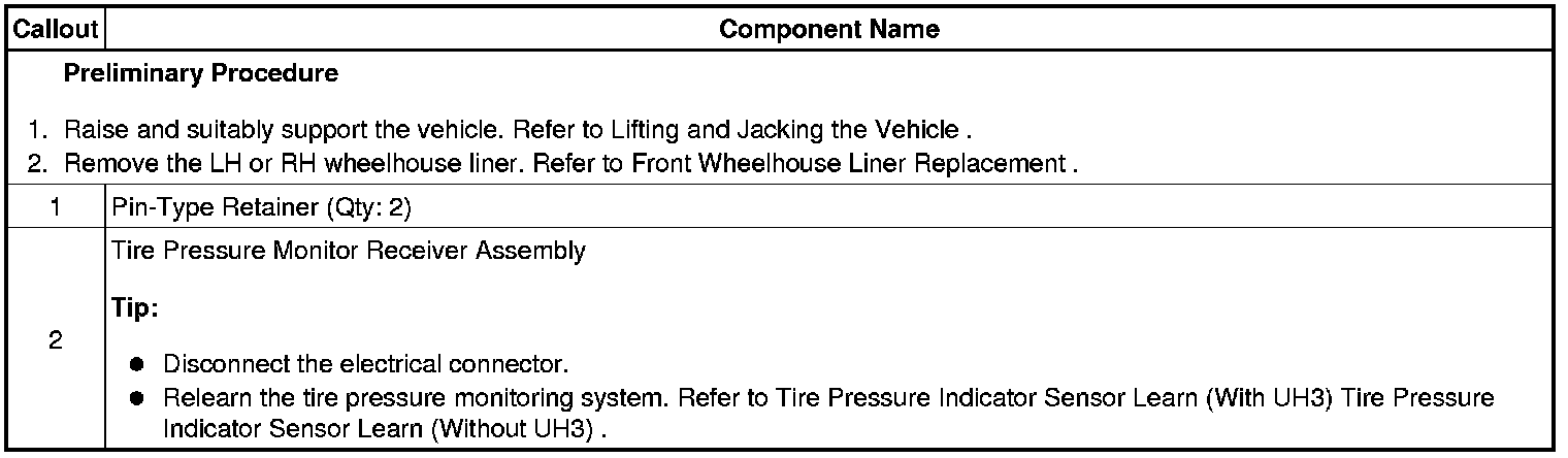 Tire Pressure Indicator Receiver Replacement (RPO UH3)