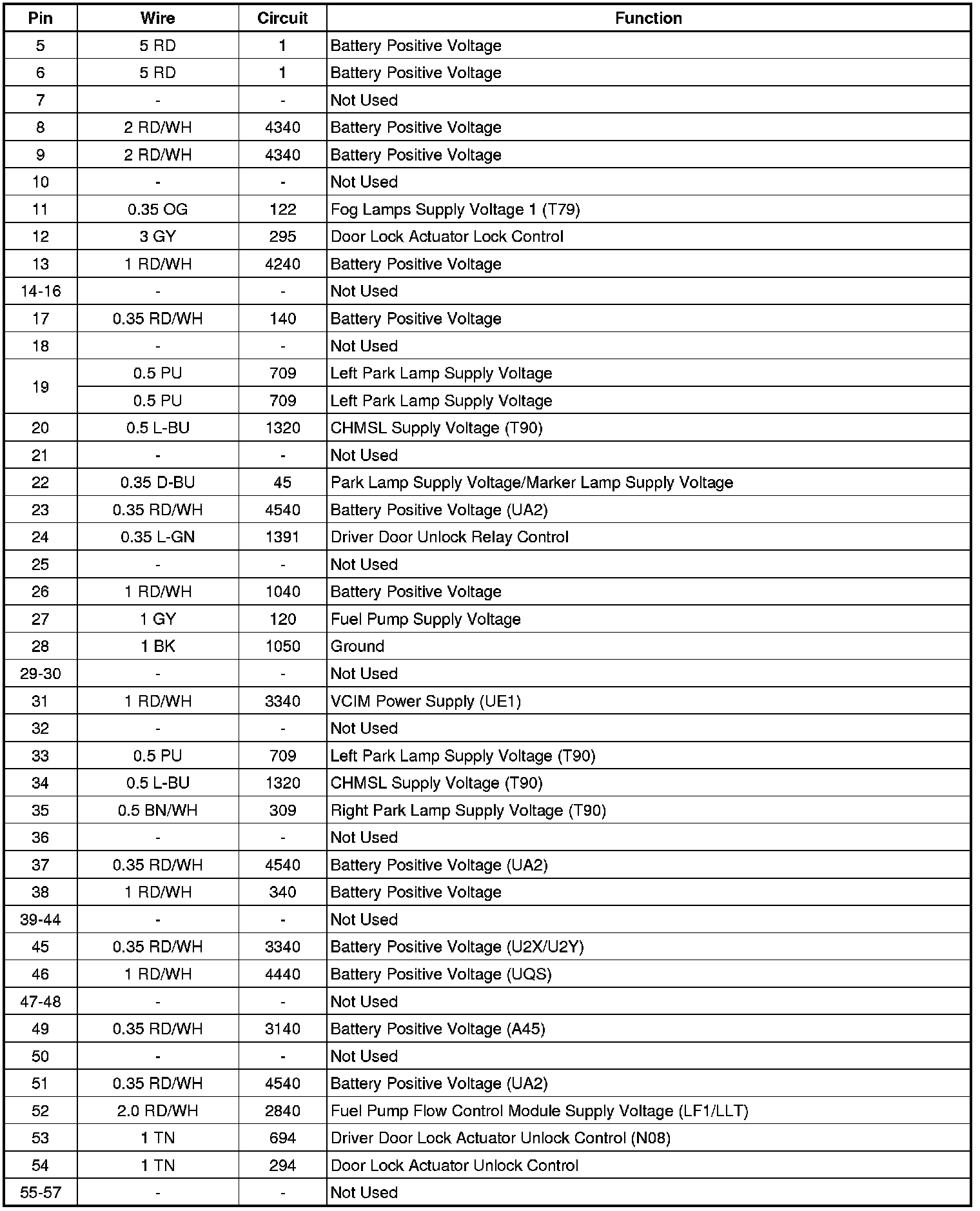 Fuse Block - Rear Label (except LSA)