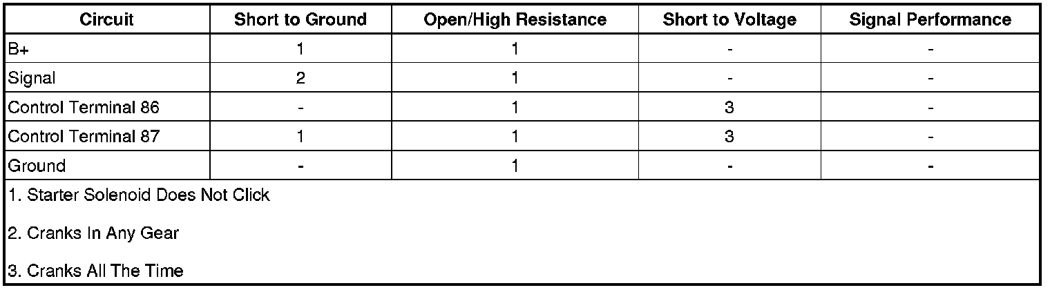 • If the starter relay does not click or the engine does not crank, refer to Circuit/System Testing.